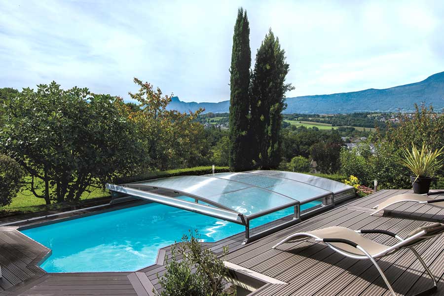This type of pool enclosure has a reduced height that varies according to the model chosen – low or telescopic, removable or sliding, motorised or manual – to adapt to all types of environment. Abritaly’s Basic enclosures allow you to use the pool all year round, as you can also swim under the enclosure.