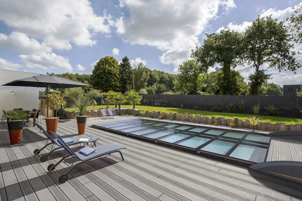 Our motorised enclosures are the ideal solution to protect your pool at any time, even from a distance. The structure, made of high-tech materials, allows automatic opening and closing thanks to a rechargeable remote control or a simple key.