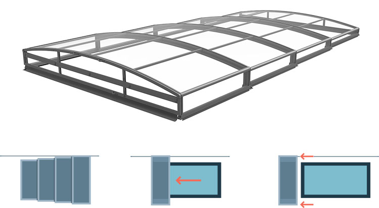 Kaplama, altı farklı renk seçeneğiyle sunulmaktadır. Opsiyonel olarak motorlu versiyon tercih edilebilir ve uzaktan kumandayla kontrol edilebilir. Ayrıca, isteğe bağlı olarak erişim kapısı eklenebilir veya tamamen şeffaf malzeme ile üretilebilir.