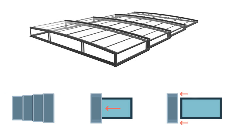 Ultra-düşük çift cidarlı teleskopik kapama, çift cidarlı polikarbon kaplaması ve modern tasarımıyla öne çıkar. Kullanım kolaylığı ve kullanılan malzemelerin güvenliği, bu modeli her ihtiyaca uygun hale getirir: görünmez, düz ve çevre dostudur. Teknolojiyi, kullanım pratikliğini ve şık hatları bir araya getirmek isteyenler için ideal bir çözümdür. Yan ray montajı gerektirmez ve şeffaf yan paneller sayesinde havuz içini görmeyi mümkün kılar; bu da yapının zarafetini ve sadeliğini artırır. Alüminyum profili ergonomiktir ve kolay kullanım sağlar.